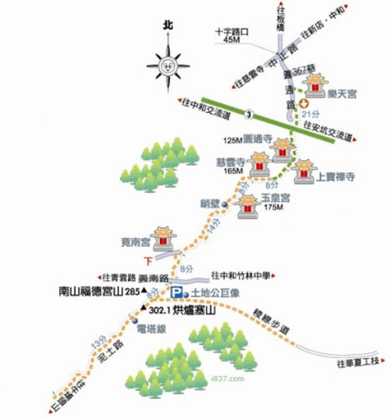 中和興南路上搭乘公車 『 F512』、 『895』 於烘爐地站下車